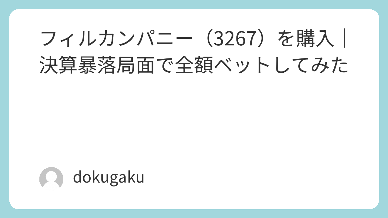 フィルカンパニー(3267)を購入|決算暴落局面で全額ベットしてみた