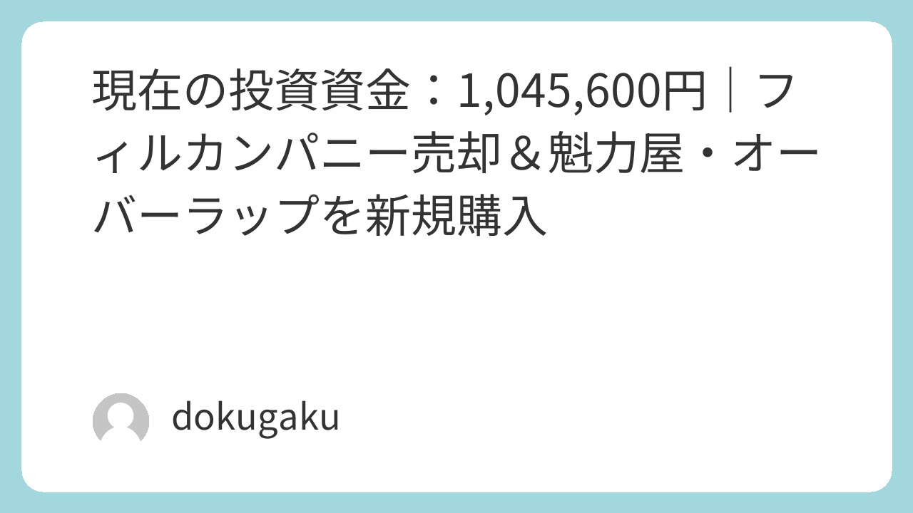 新たに魁力屋(5891)とオーバーラップ(414A)を購入しました。