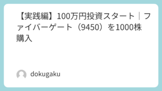 ついに100万円での株式投資を開始しました。 3連休前の金曜日、全面安で全体的に売られていたタイミング。 ここが良い買い場だと思い、ファイバーゲート(9450)を購入しました。 購入内容 銘柄:ファイバーゲート(9450) 株数:1,000...